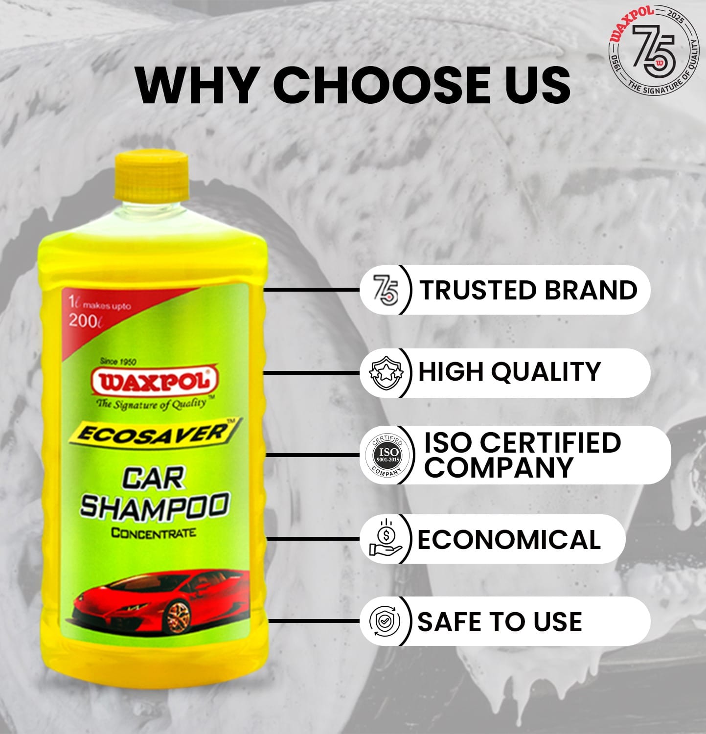 Waxpol Ecosaver Car Shampoo Concentrate is an Economical, Biodegradable, pH balanced Car Shampoo which is formulated with high foaming & superior cleaning agents which deeply cleans all stains and dirt with ease. Can be used for Bucket, Foam or Snow Foam Wash. It is clear coat safe.