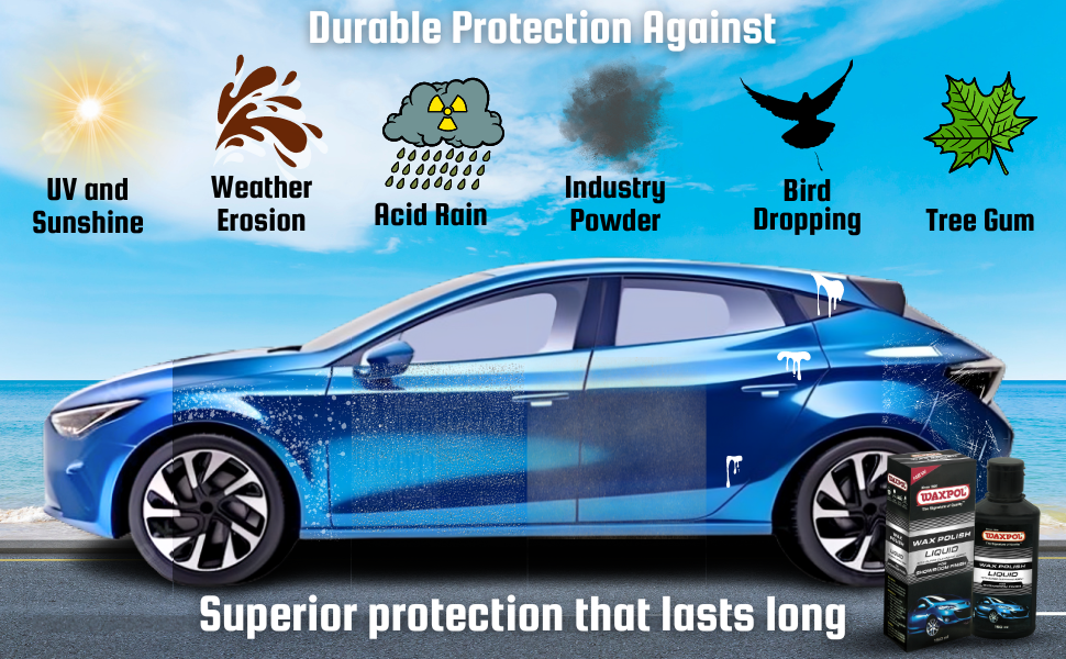 Waxpol Showroom Finish Liquid Car Polish provides a stunning, reflective shine and safeguards your car's paint with a water-resistant, UV-protective layer. Maintain your vehicle's fresh appearance with enduring gloss and protection.
